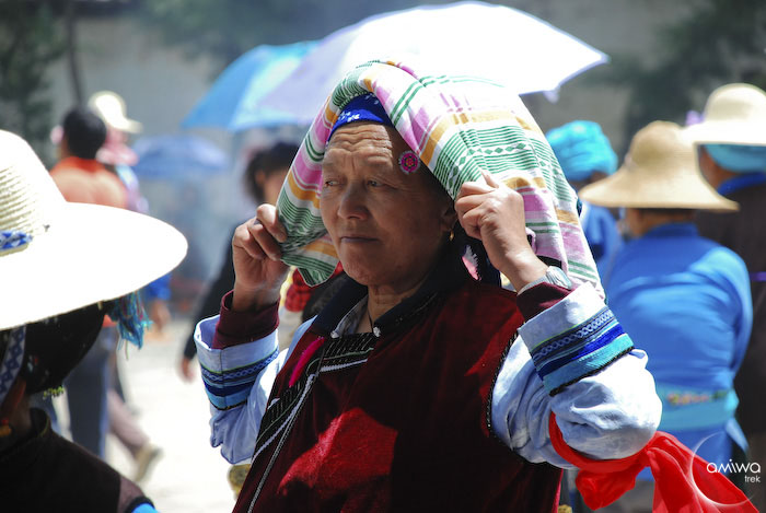 This gallery presents 34 photos of a local festival in Dali county, where the Bai nationality comes together for religious festivals. You will discover the great variety of traditional Bai clothing (the colour depends upon the age of the individual wearing the garment); the colour white is favoured for young women. The embroidery on headdresses, baby slings and other articles of clothing is truly remarkable.
